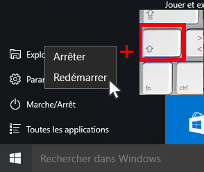 Pressez sur la touche "Majuscule" pendant que vous cliquez sur "Redémarrer".