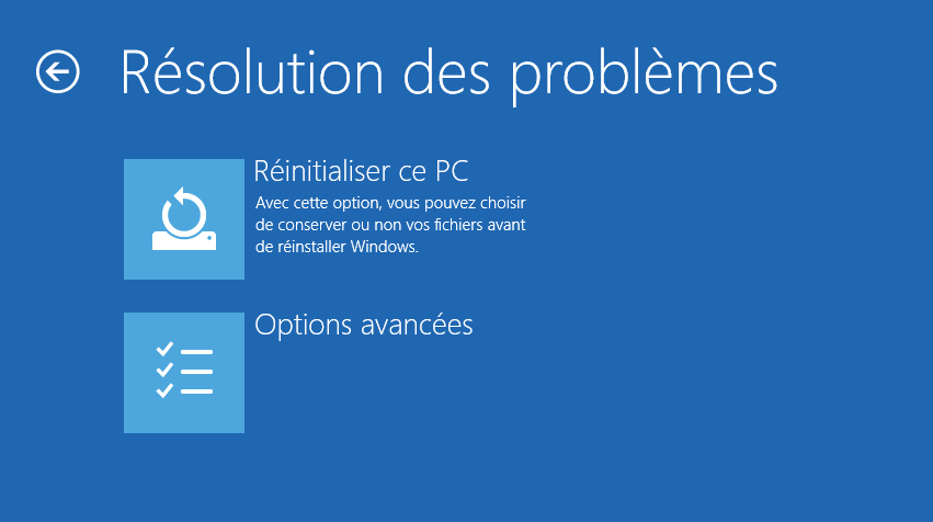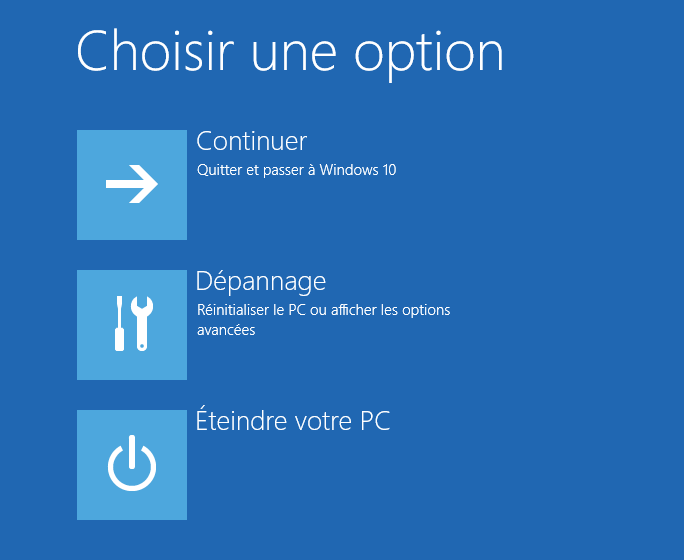 Lorsque le PC a redémarré, choisissez l'option "Dépannage"