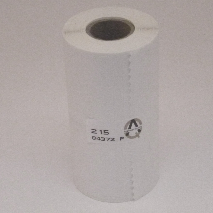 Rouleau d'étiquettes blanches thermiques de largeur 114 mm.